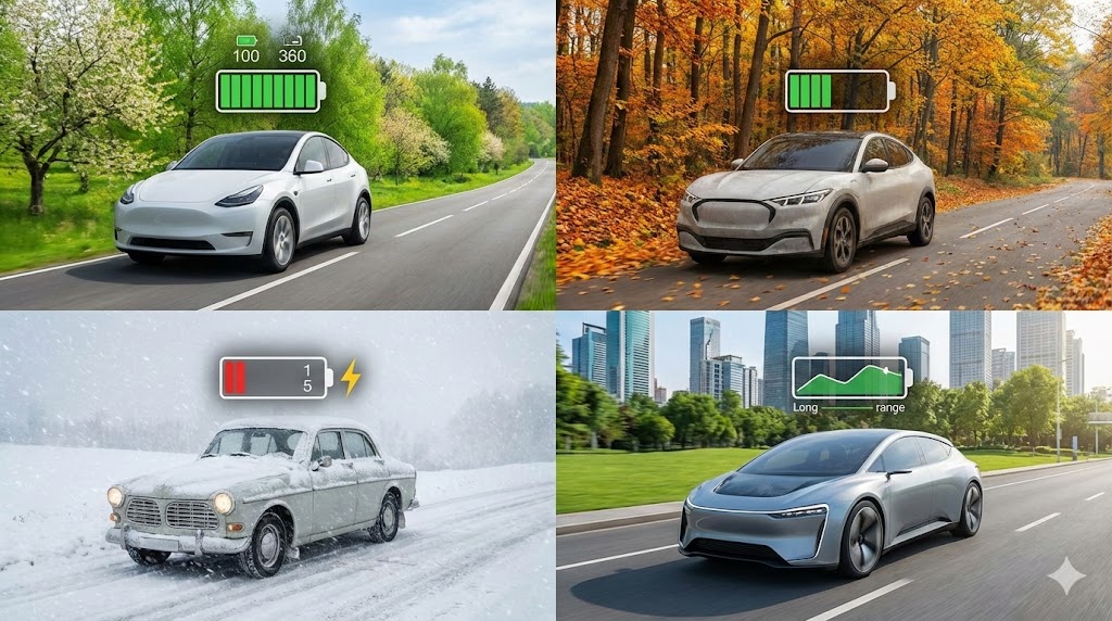ここまで「距離」の話をしてきましたが、実はEVの航続距離は一定ではありません。季節や走り方、そして経年劣化によって変化する「生き物」のような数字なんです。