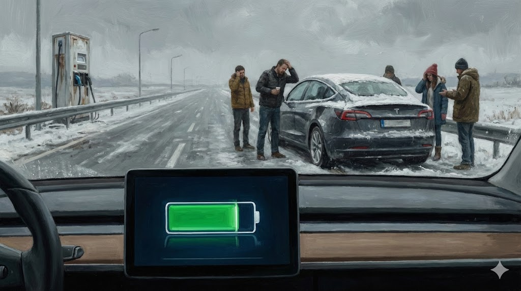 EVオーナーにとって、冬は最も厳しい季節です。私たちが寒い時に体を震わせてエネルギーを使うように、EVも寒さが苦手なんです。特に影響が大きいのが「暖房」です。ガソリン車に乗っているときは意識したことがないかもしれませんが、実はガソリン車の暖房は「捨てている熱(エンジンの排熱)」を再利用しているため、燃費への影響は軽微なんです。